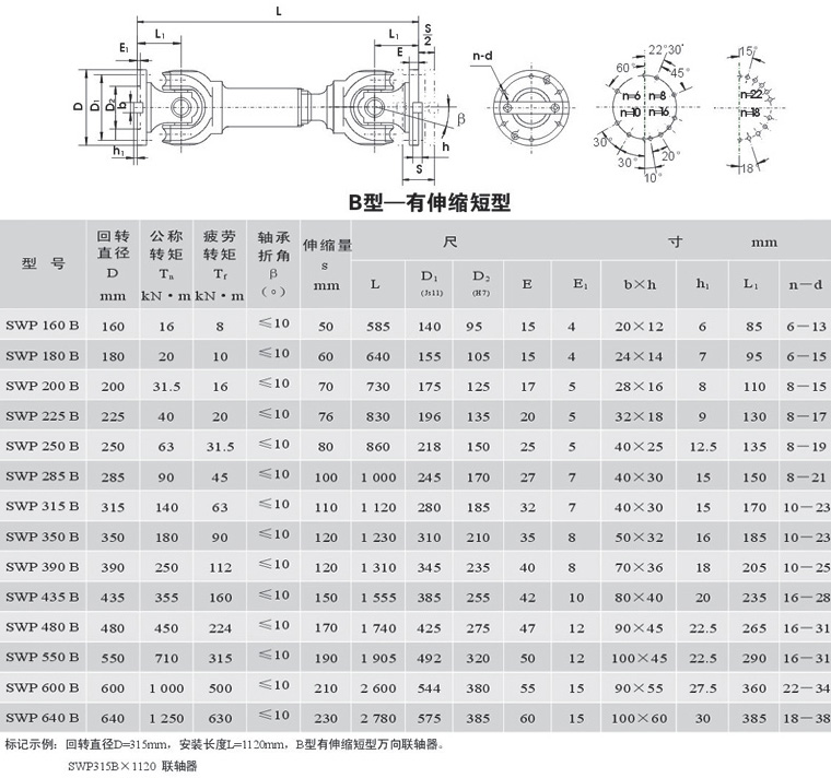 十字軸式萬向聯(lián)軸器 >> SWP-B 有伸縮短型