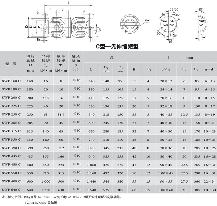 十字軸式萬向聯(lián)軸器 >> SWP-C 無伸縮短型