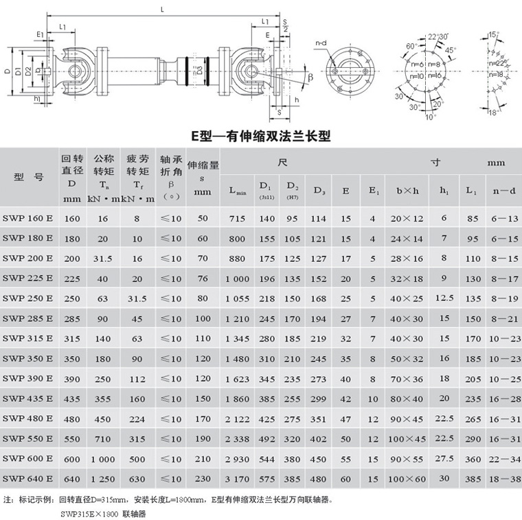 十字軸式萬向聯(lián)軸器 >> SWP-E 有伸縮雙法立長型