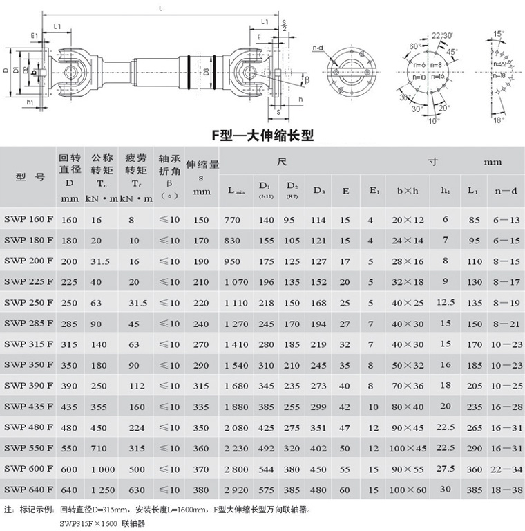 十字軸式萬(wàn)向聯(lián)軸器 >> SWP-F 大伸縮長(zhǎng)型