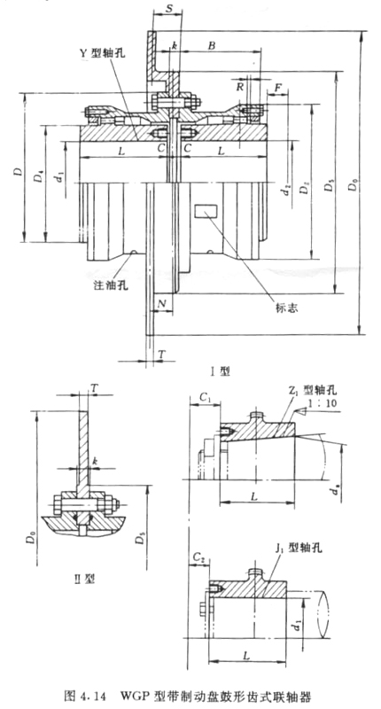 齒式聯(lián)軸器 >> WGP型帶制動盤鼓形齒式聯(lián)軸器